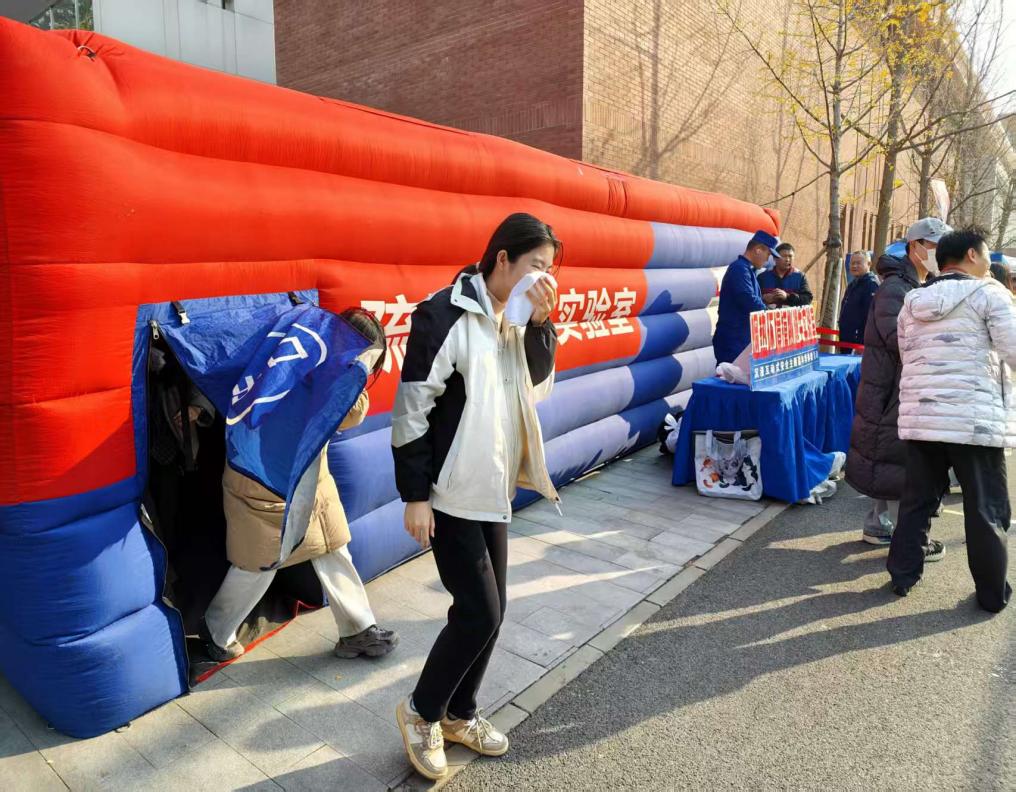 在预防踩踏体验区,师生们通过场景模拟和互动演练身临其境地参与安全实践,系统学习人群聚集场所的预防避险知识,既掌握了判断踩踏风险的预警信号,又提升了紧急情况下的自护互救能力。